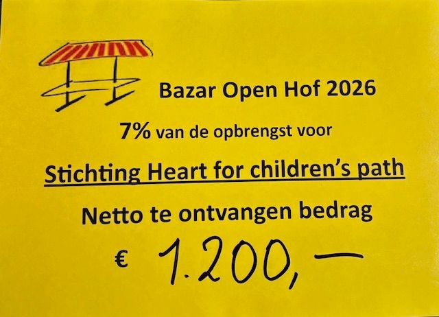 Op 28 maart hebben wij 7% van de opbrengst van de Bazar in ontvangst mogen nemen t.w. € 1.200,00!!